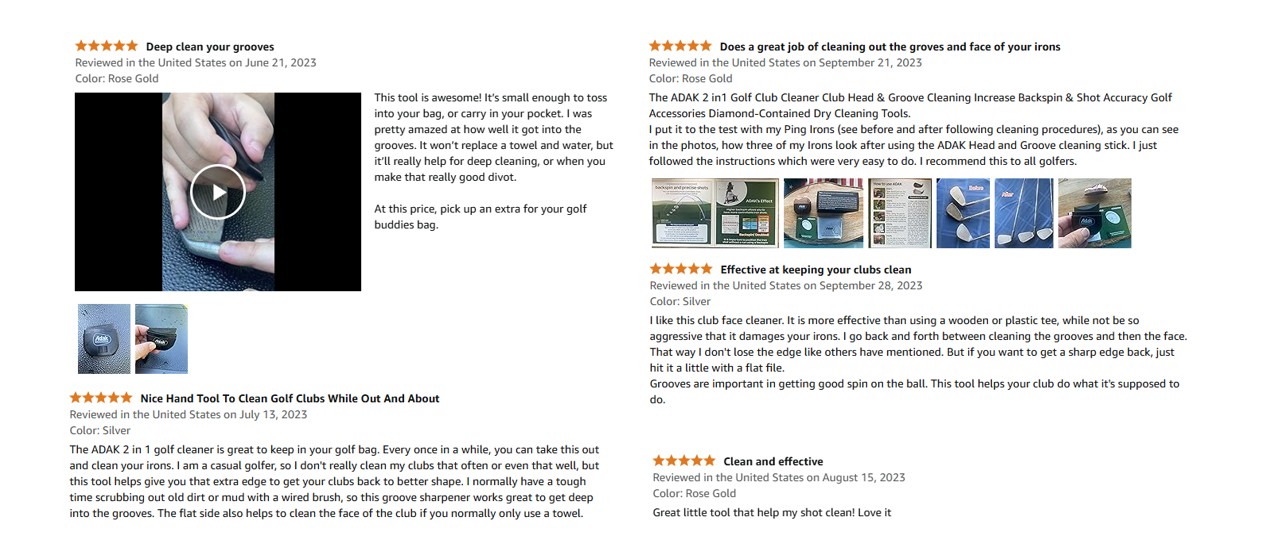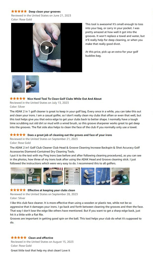 Keep the grooves sharp and clean — and of course, the face will stay spotless too. Adak Cleaner is the only groove sharpener that restores precision without damaging the original design of your club.
